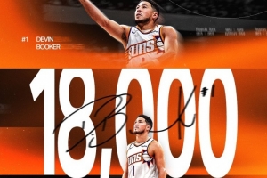 本场比赛之前,布克的生涯总得分为17966分,在第四节他拿到个人第34分后,布克的生涯总得分达到18000分。