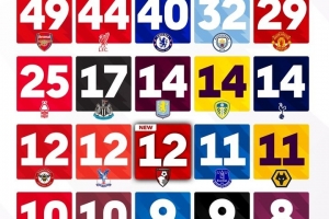 英超官方列各队最长不败:阿森纳49场仍居首,伯恩茅斯当前已12场