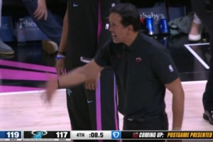 这球怎么看?热火落后4分拉松发球被吹5秒违例 斯波场边直接气炸